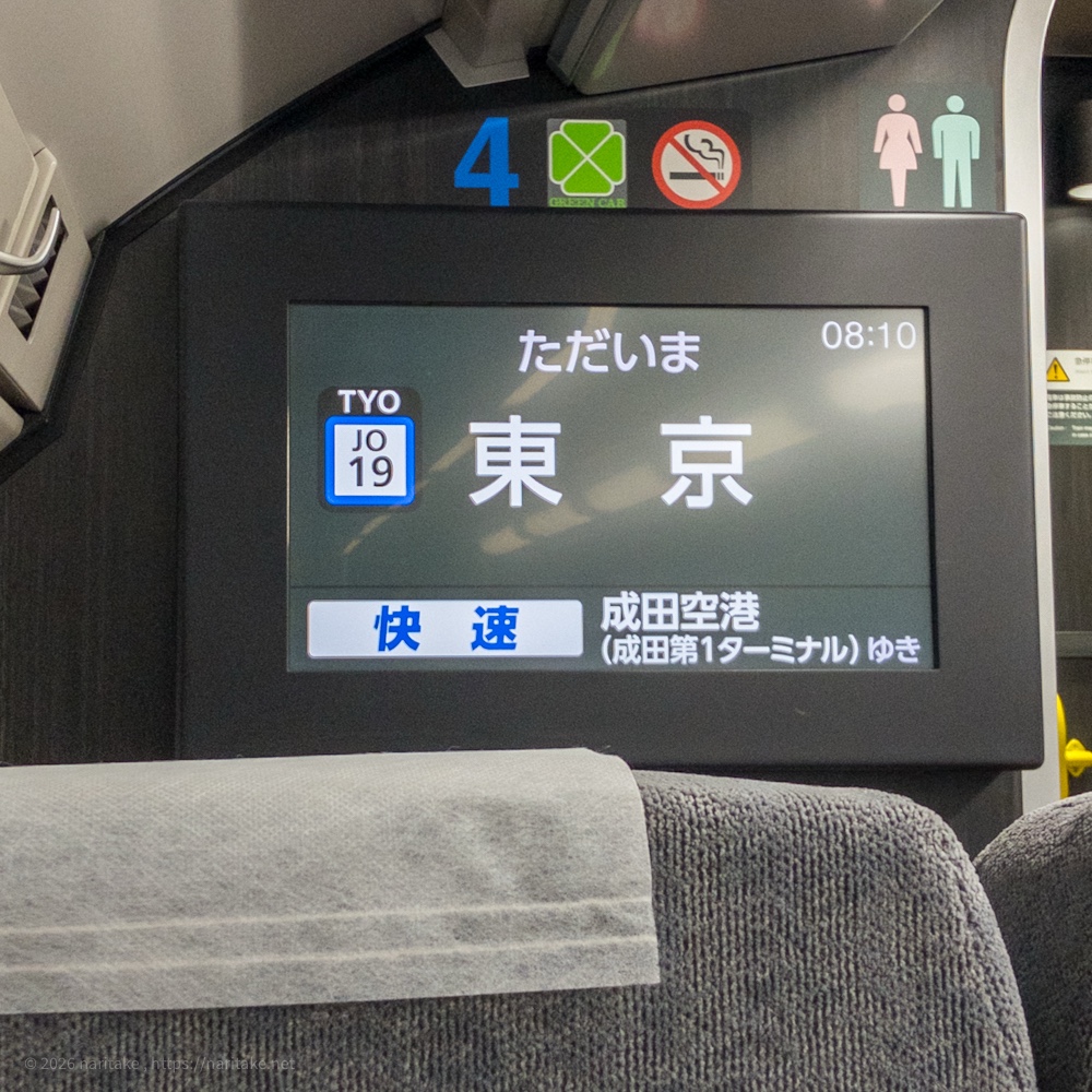 13:14に成田駅から乗車・・・そして13:40ぐらいに千葉駅に到着したら、電車が発車しない。代わりに車窓さんのアナウンスが。「稲毛~幕張間で強風により障害物が線路に横たわり、その撤去作業のためしばらく千葉駅にて停車します。。」
