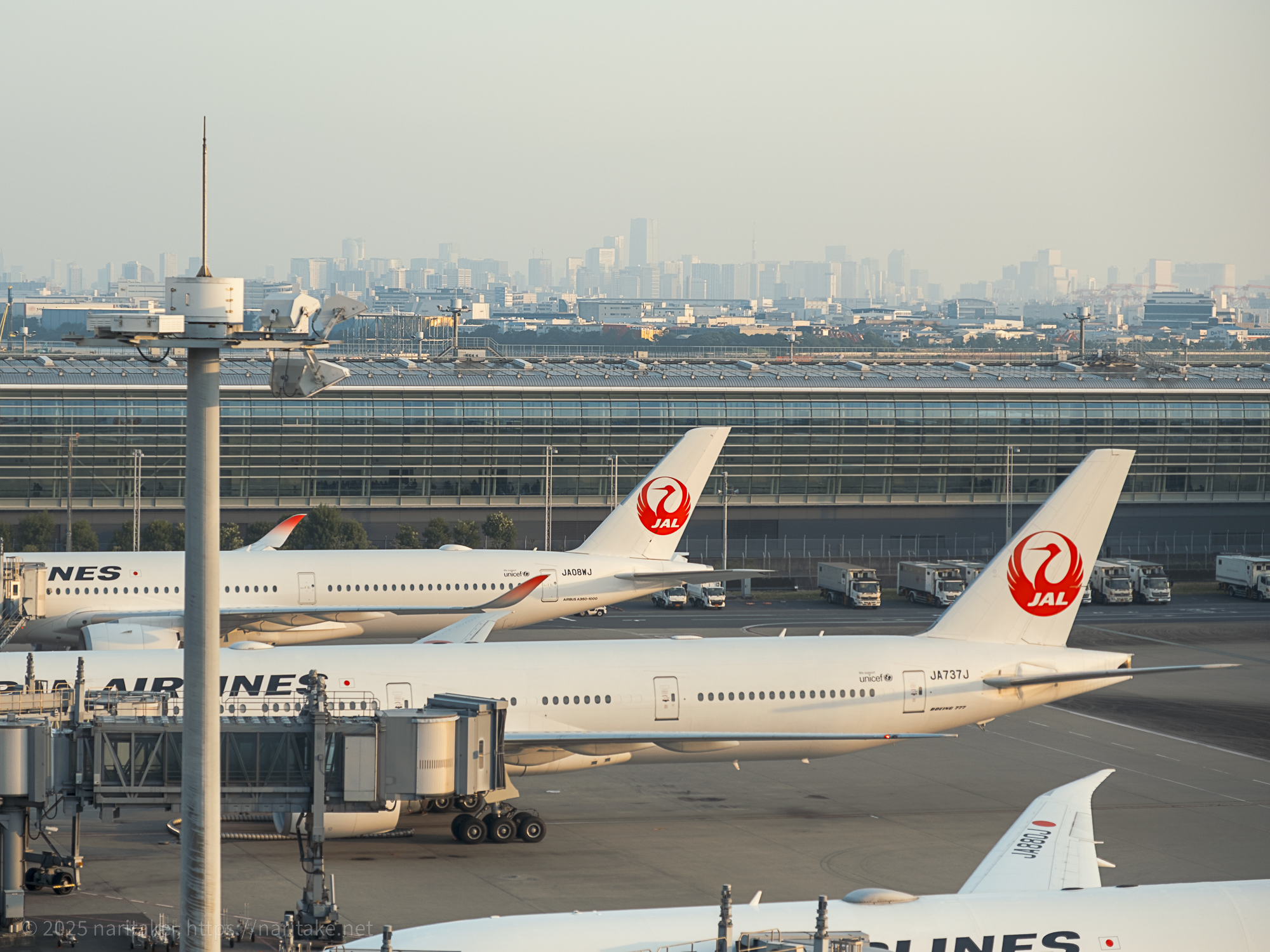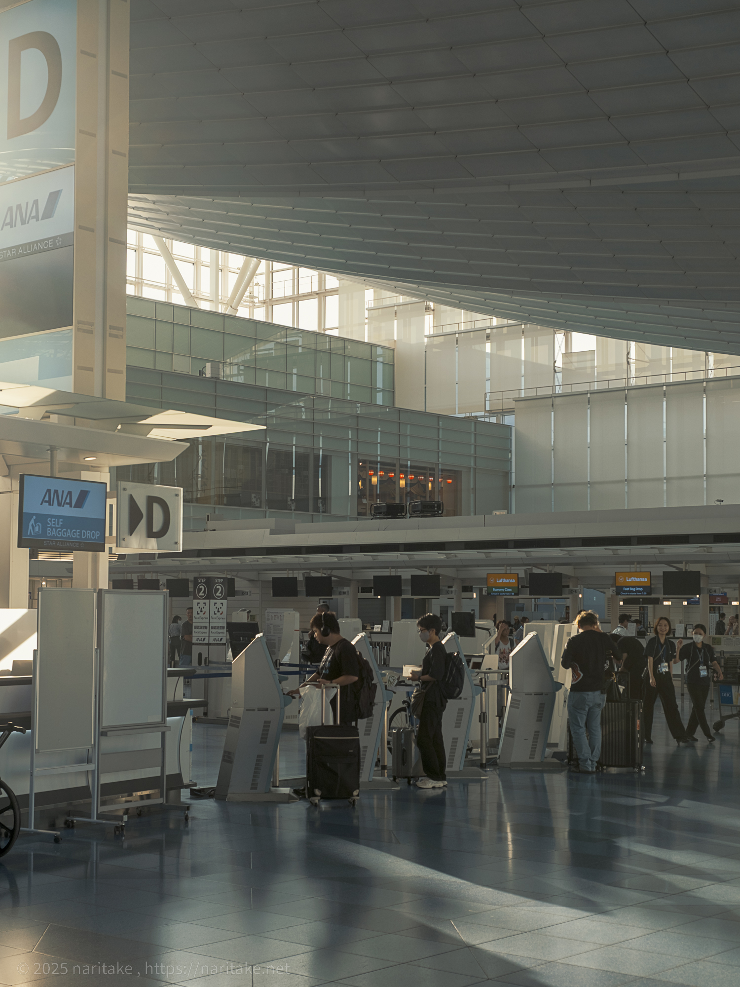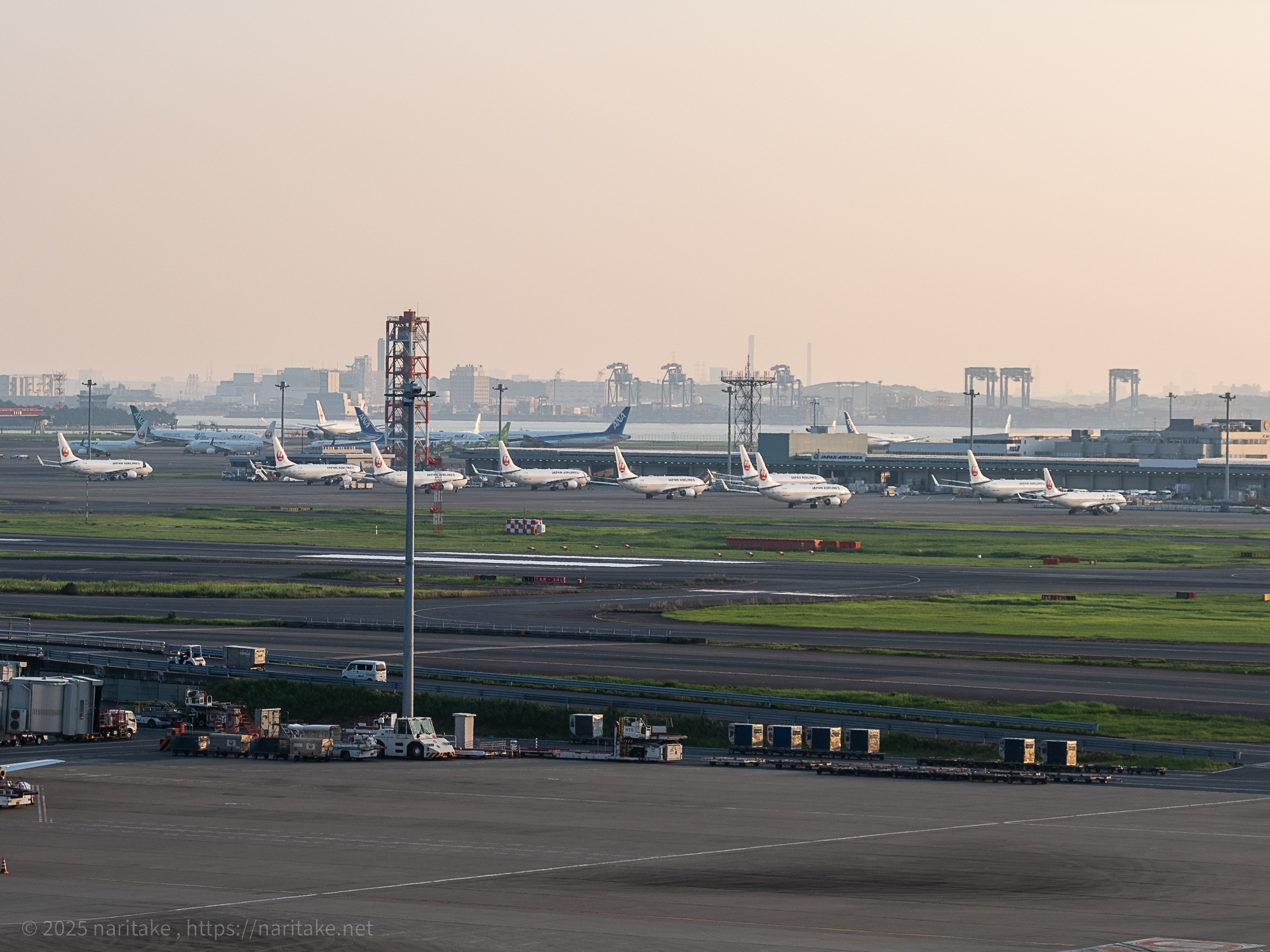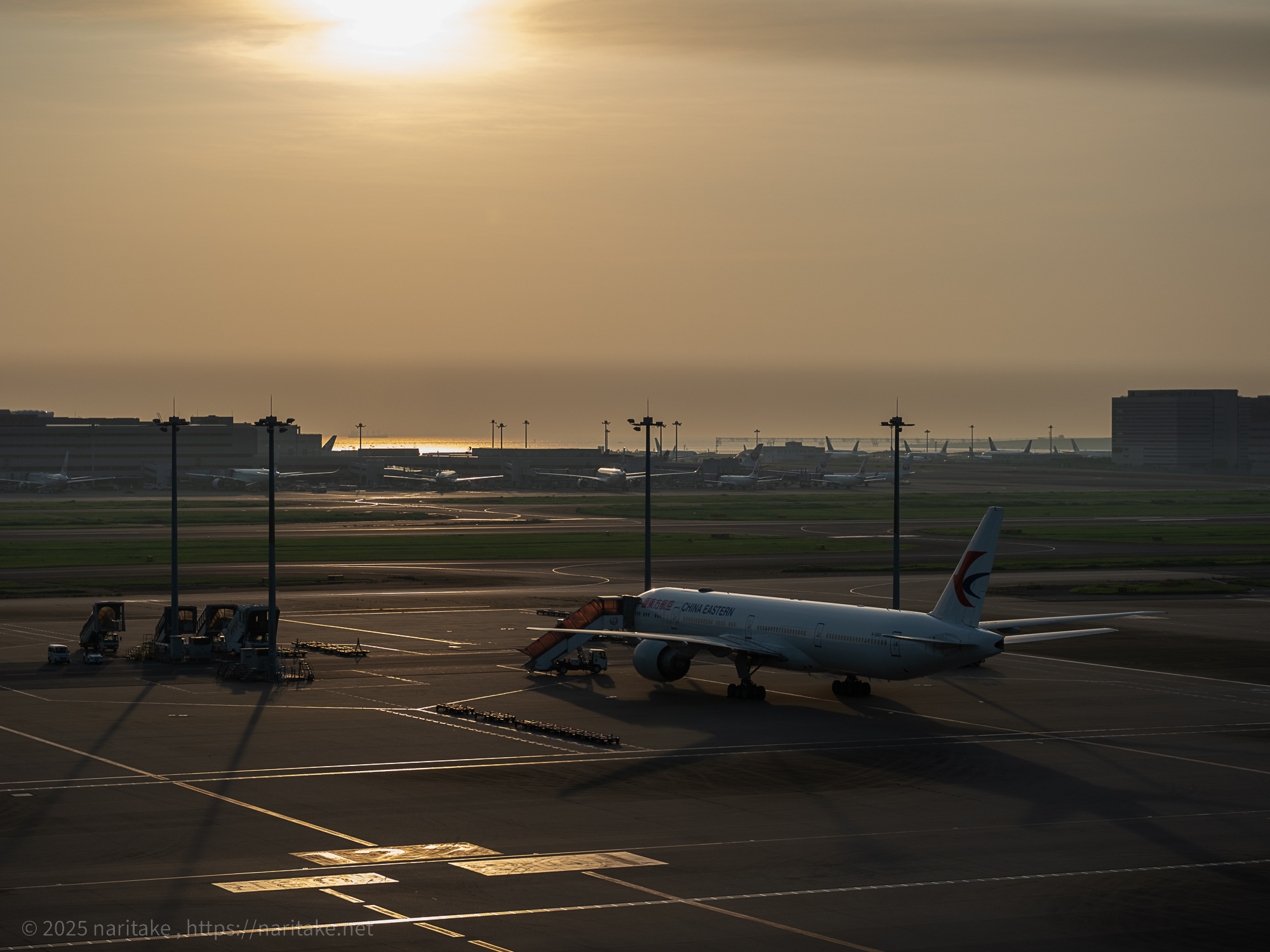 これを実践しようと超早起きして早朝の羽田空港に…という企みを夏休みの間にやろうとしたところ寝坊で一度失敗。「リベンジ!」と思い、今回は徹夜して寝ずに朝まで過ごして羽田空港に車で向かいました。まだベンチで寝ている人が多い中、朝日に照らされる滑走路と飛行機、人が少ない第3ターミナル内を2時間ちょい撮り歩きました。